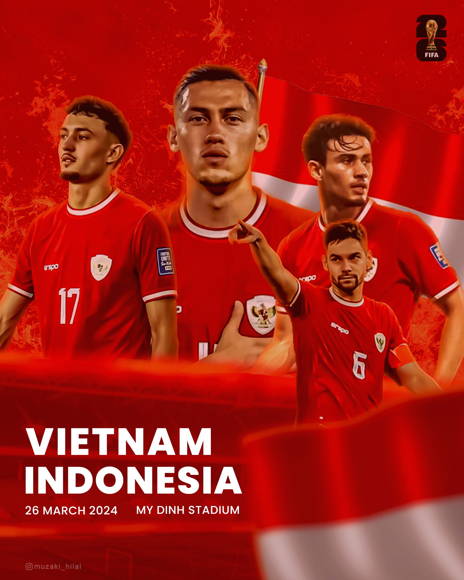 Matchday Design untuk pertandingan Kualifikasi Piala Dunia FIFA 2026, antara Vietnam vs Indonesia. Matchday ini dilaksanakan pada tanggal 26.03.2024.